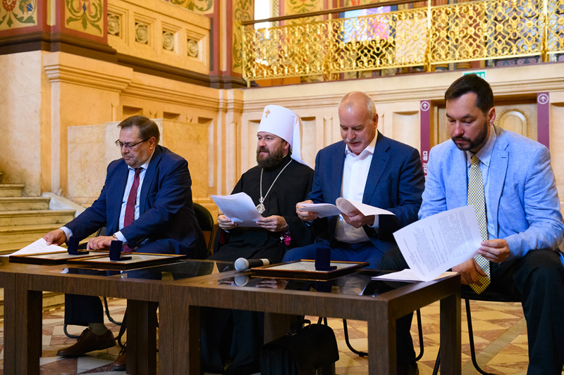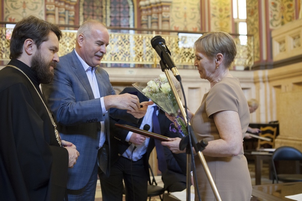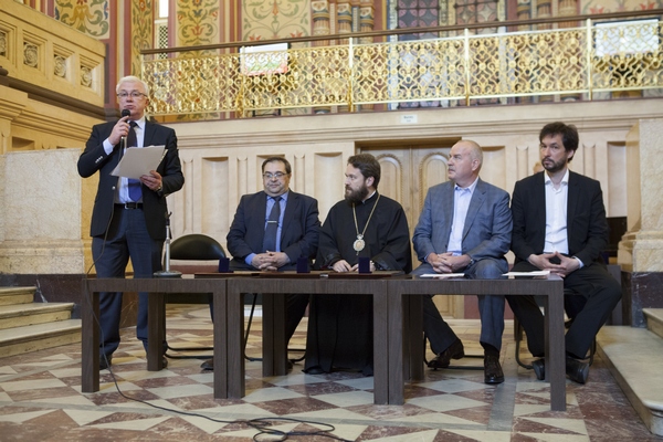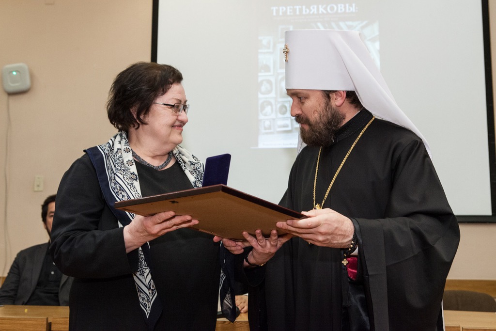 директор Исторического музея Левыкин Алексей Константинович, митрополит Волоколамский Иларион, сопредседатель Благотворительного фонда им. Святителя Григория Богослова, Председатель Совета директоров ОАО "Протек" Якунин Вадим Сергеевич.