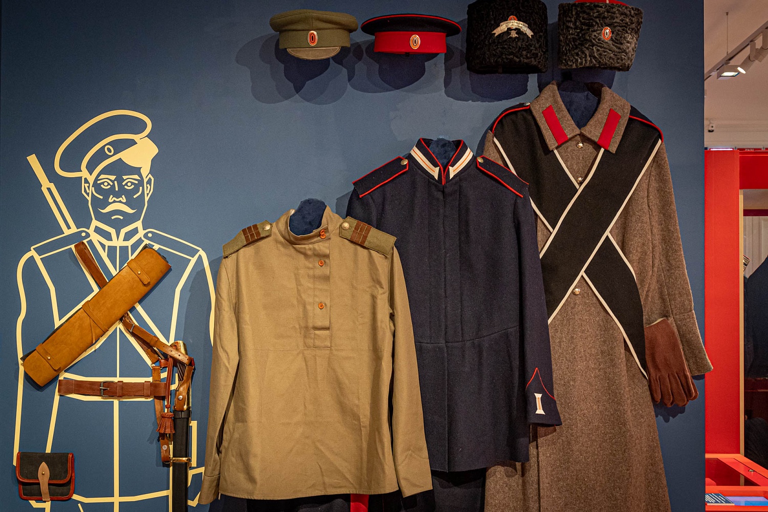 Специально для показа в новой экспозиции были отреставрированы 22 предмета из коллекции Исторического музея. Так, в числе предметов, которые впервые представлены широкой аудитории: портрет атамана Войска Донского Андриана Денисова (неизвестный художник, вторая половина XIX в); чекмень генерала пешей и конной артиллерии Черноморского казачьего войска (1840 - 1855 гг.); халат Бурятских казачьих полков Карацайского отделения (1840-1850-е гг.); икона Богоматерь Знамение (Курская-Коренная) XVIII в.