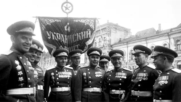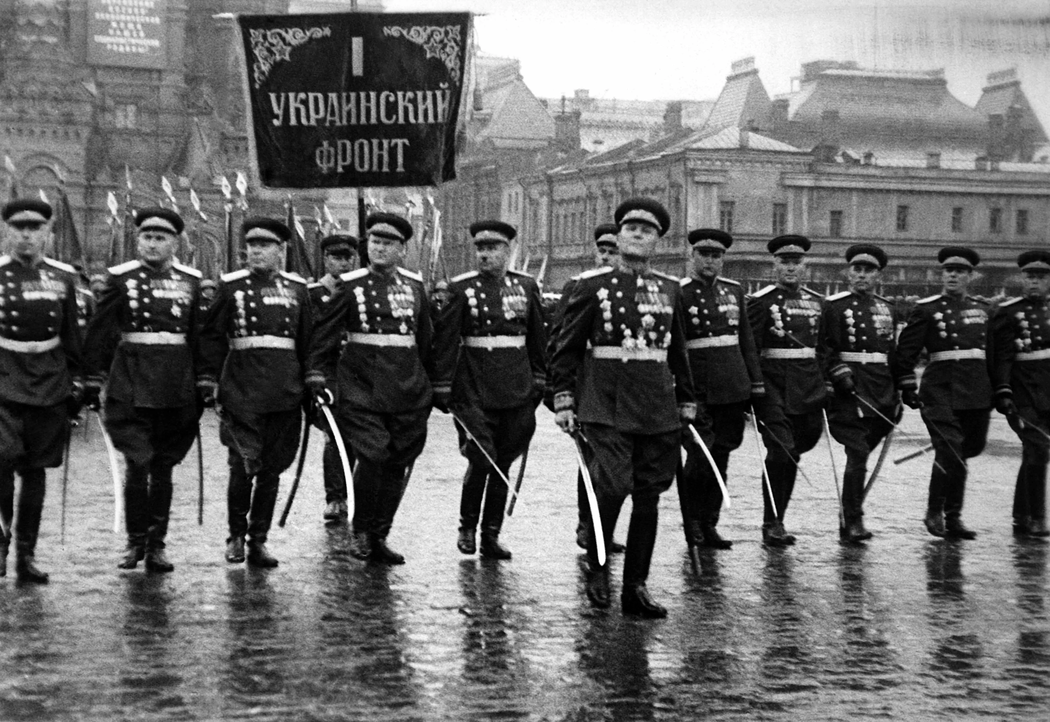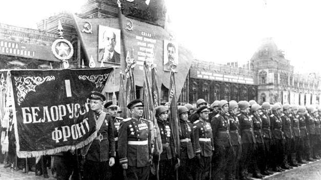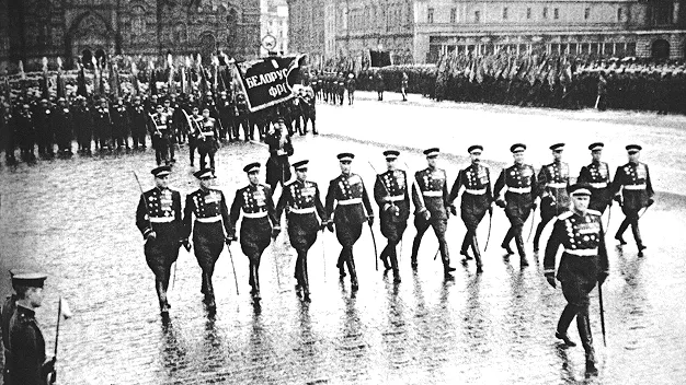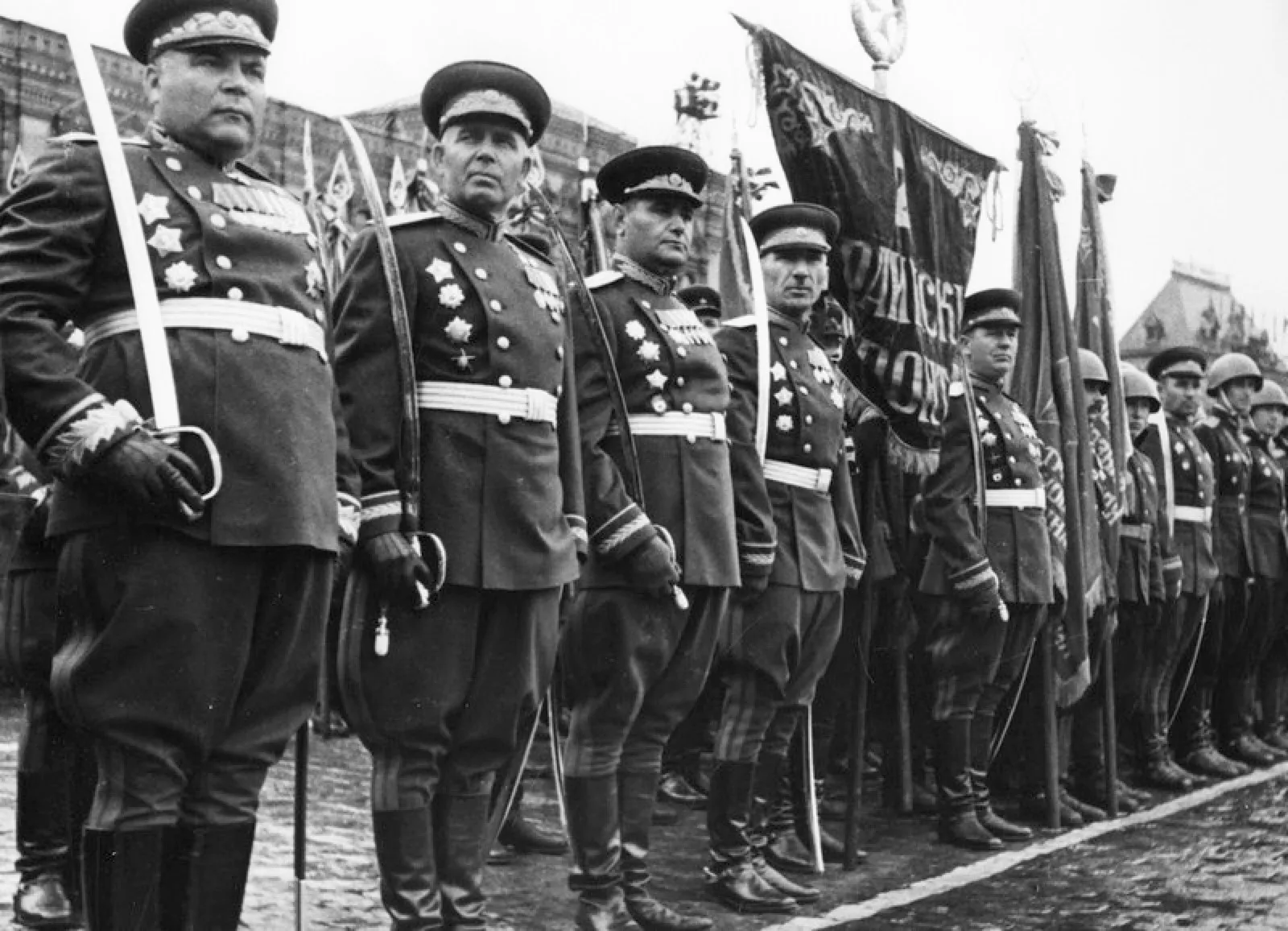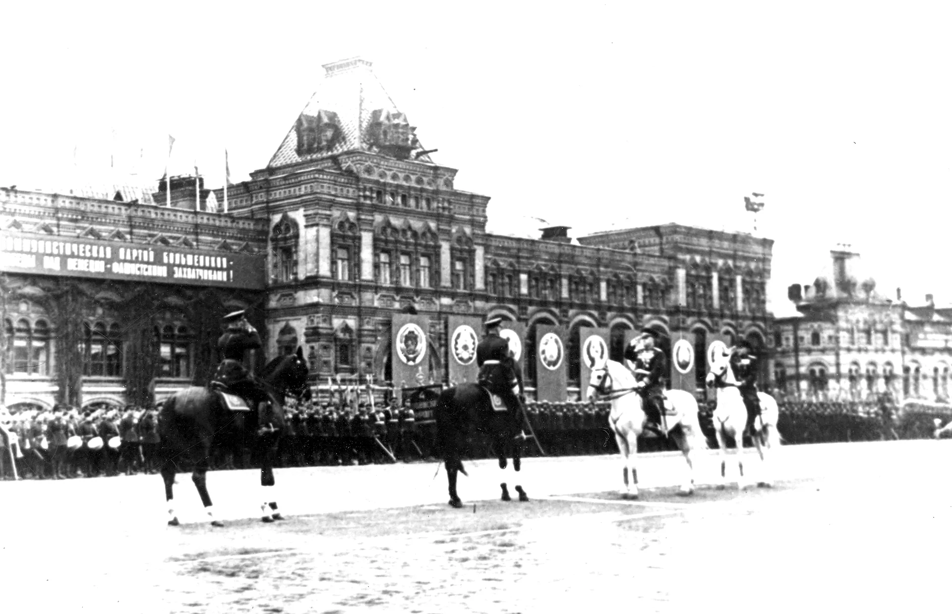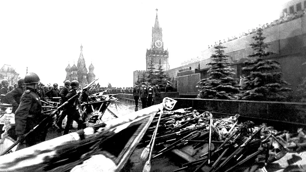 На площадь вступают войска Московского гарнизона во главе с командующим