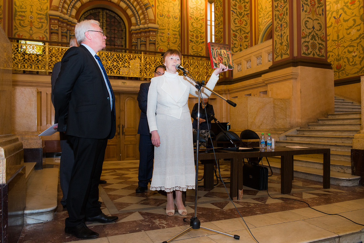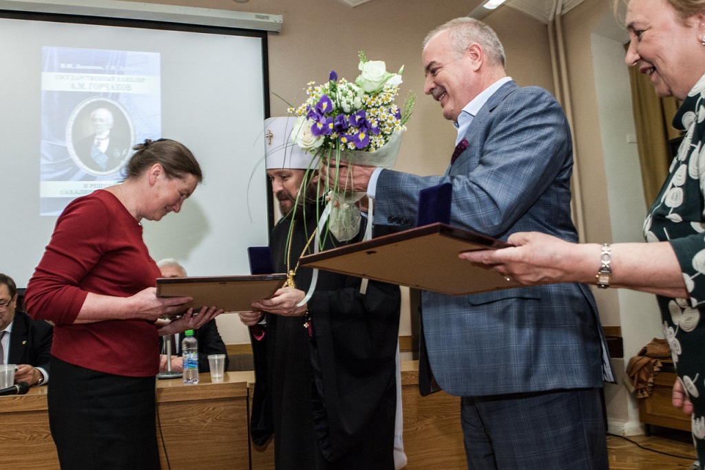 директор Исторического музея Левыкин Алексей Константинович, митрополит Волоколамский Иларион, сопредседатель Благотворительного фонда им. Святителя Григория Богослова, Председатель Совета директоров ОАО "Протек" Якунин Вадим Сергеевич.